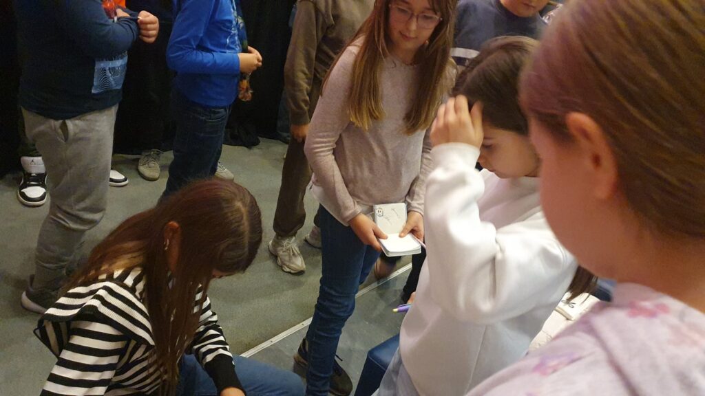 Učenici 3. i 4. razreda imali su priliku upoznati filmsku ekipu filma „Drugi dnevnik Pauline P.“, saznati kako mladi glumci usklađuju školske obaveze i snimanje, kako su izgledale audicije za film te čime se bave u slobodno vrijeme. Nakon toga premijerno su pogledali film, a oni najbrži uspjeli su dobiti i autogram glavne glumice Katje Matković (Pauline).
